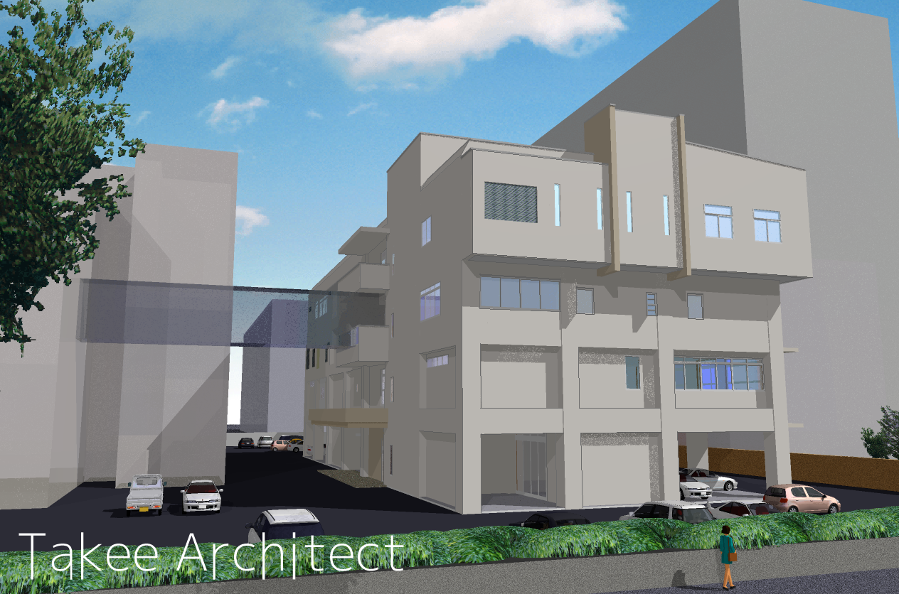 本建物には、4階が最も大きなスペースを必要とするため、4階の室配置により建物のプロポーションが決定されている。 また、隣接する10階建てのホテルからの目線を遮るために、庇を設置し、壁を高く立ち上げる等の配慮が必要とされた。